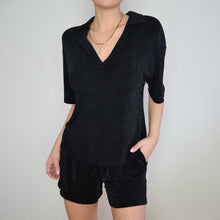 Toller lässig fallende Ani Freizeit Zweiteiler für Frauen, aus softer Viskose / Polyester Gewebe und Volltonfarbe. Das Set besteht aus einer Bluse mit V Ausschnitt und kurzen Armen und einer Shorts mit Gummiband, Bindegürtel und Seitentaschen. Es ist sehr angenehme auf der Haut, Ideal für die warmen Tage und für den Urlaub.