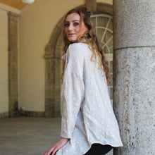 im schicken Heart-Print, ist eine lässig fallende Bluse aus Musselin Stoff mit geradem Schnitt, Hemdkragen und langen Ärmeln. Die Bluse ist in verschiedenen Farben erhältlich.