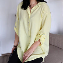 Unsere Freya Langbluse aus 100% Baumwolle-Musselin, ist eine lässig fallende Langbluse aus Musselin Stoff und gehört zu einem der beliebtesten Artikel in unserem Onlineshop. Sie hat einen geraden Schnitt, einen Hemdkragen und eine Knopfleiste. Die Ärmel können nach Belieben mit einem Knopf an der Seite hoch gebunden werden. Der Saum ist vorne gerade, hinten dagegen gerundet und etwas länger geschnitten.