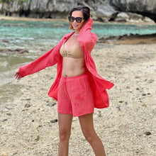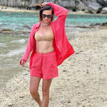 Unser striped Musselin Set ist ein lässig fallendes Freizeitset aus softem Musselin Gewebe. Das Musselin Set besteht aus einem Hemd mit langen Armen und Shorts mit Seitentaschen und Bindegürtel.