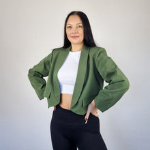 Unser Romina Kurzblazer ist ein offener Blazer mit leicht gepolsterten Schultern, einem geraden Schnitt und gerafften Ärmeln. Er ist in verschiedenen Farben erhältlich.